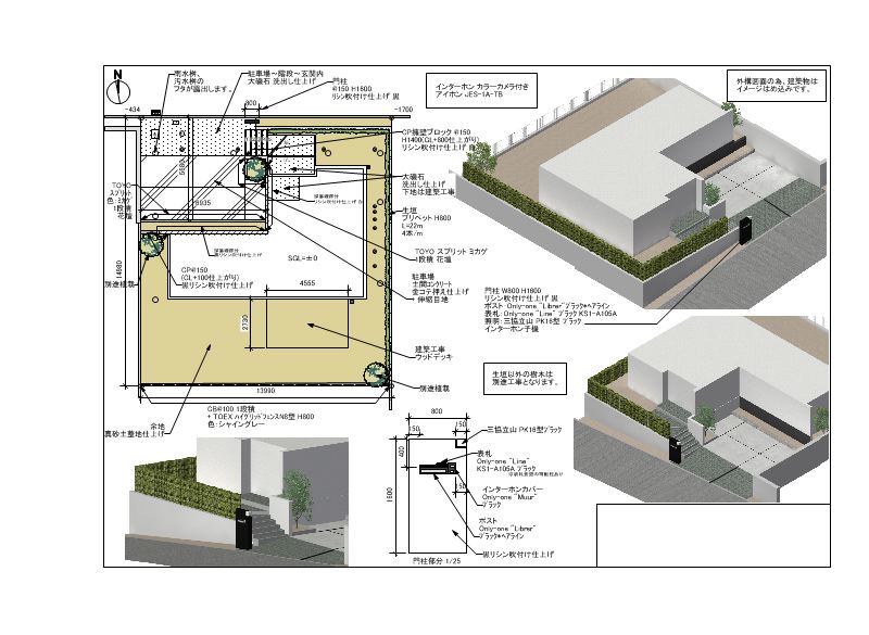 ちょうど、擁壁と電動シャッターの図面を書いておりました。