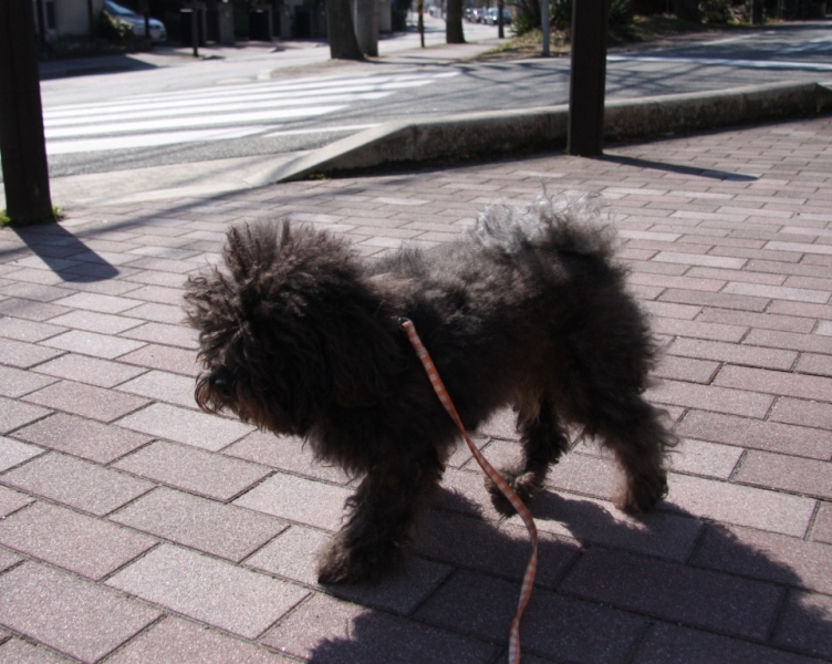 つぎの写真、これ、うちのトイプードルさん。黒。いや、以前までは黒、いまはグレー混じり。。。ちょっと変色してきおった。