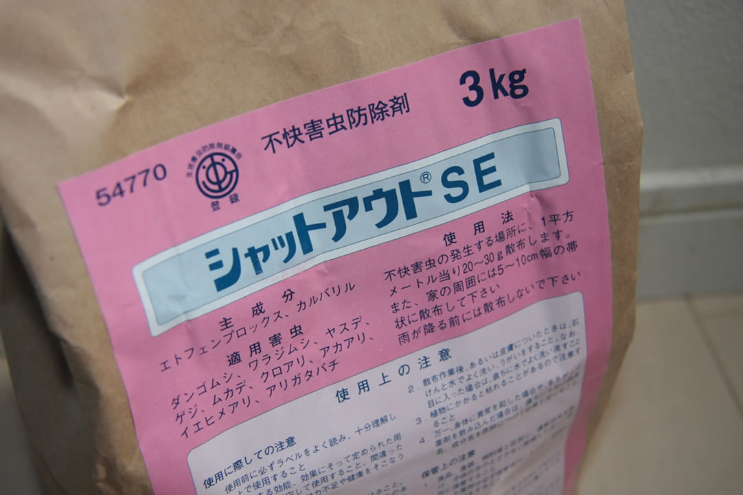 1平米あたり20~30g まく。それだけ。不快害虫防除剤。
