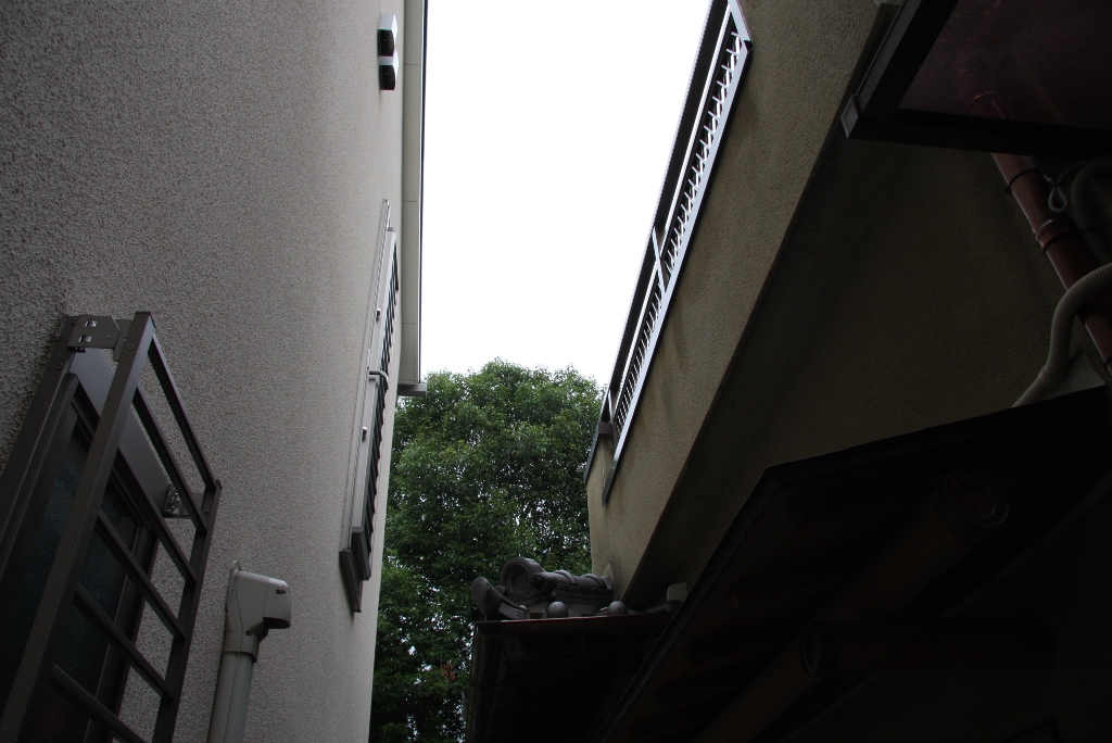 家の外側、真っ白。東西南北にぐるりとまいた。