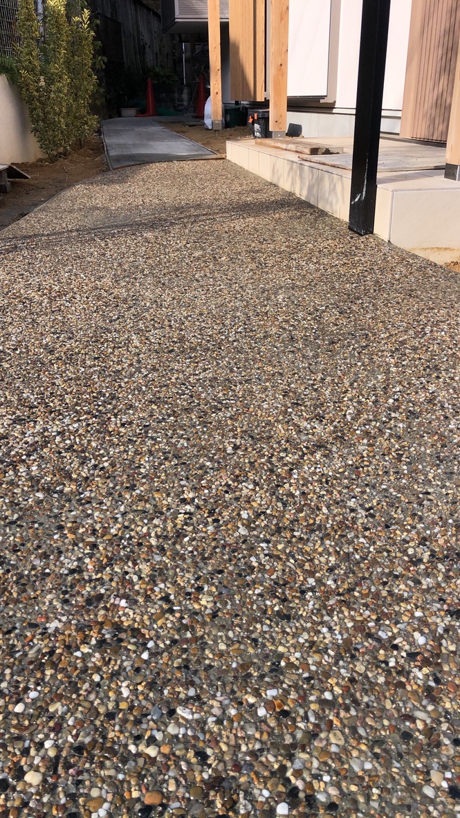 表面を水で洗って砂利を表面に見せる施工法。