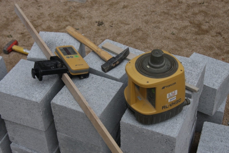 これを元に位置出しをして水平を見て現場を進めるわけです。レーザーの水平器です。
