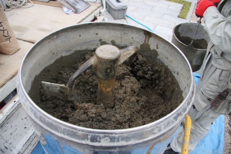 モルタルのミキサーで練り練りしながら決めて行きます。