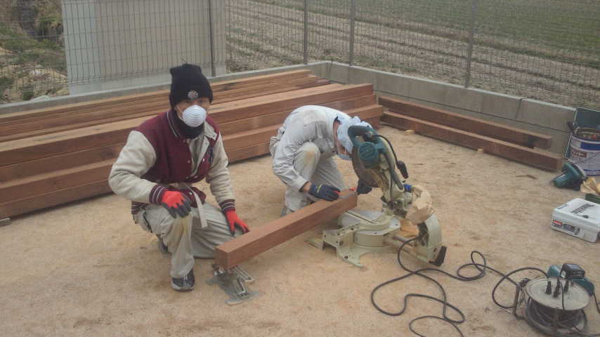現場サイドはデッキ床下用に材料をカット&カット