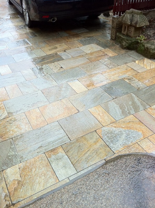 この写真は駐車場の全面敷きになっておりますが、今回はそこまで行き過ぎずボーダーライン的な使い方。