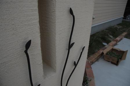 で、すでにアイアンの枝葉の飾りが取り付けてあります。