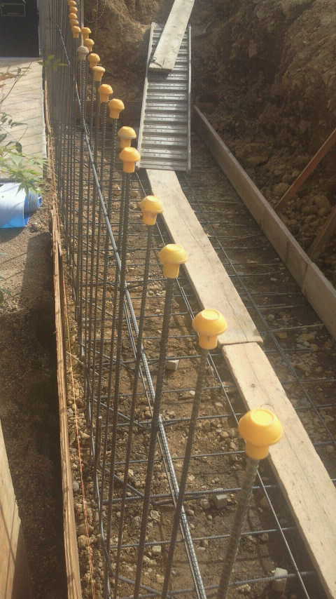 K様邸のCP擁壁ブロック積みの配筋状況です。