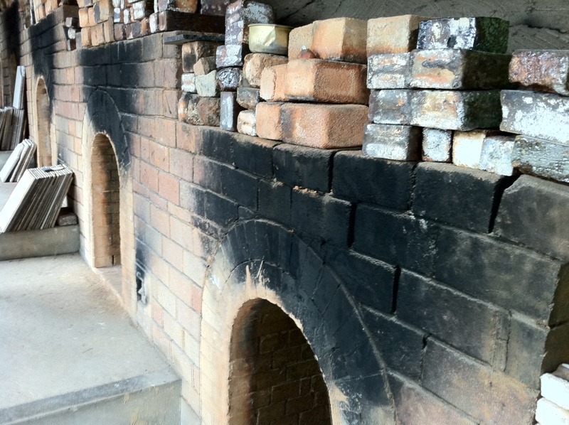 誰も説明してもらえなかったので素材まで分かりませんでしたが、上に乗っている黒くギラギラしたレンガは窯変だと思う。