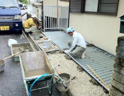 ここへ、どろろとコンクリートを流します。