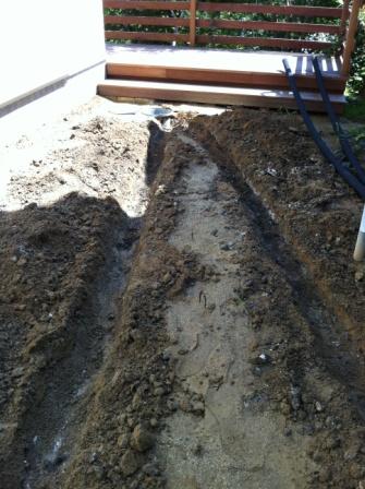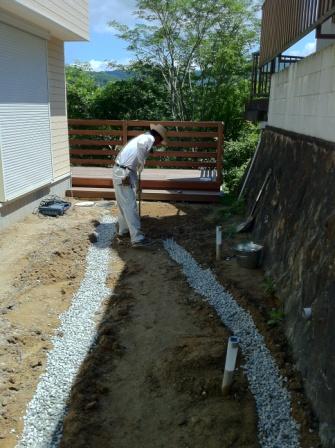 さて、その溝へ透水管を横たわしまして、そのまま埋めてしまうと土が流入しますから