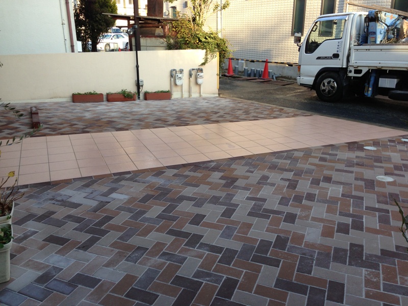 さて、宝塚市にて施工を進めてきましたインターロッキングの現場。