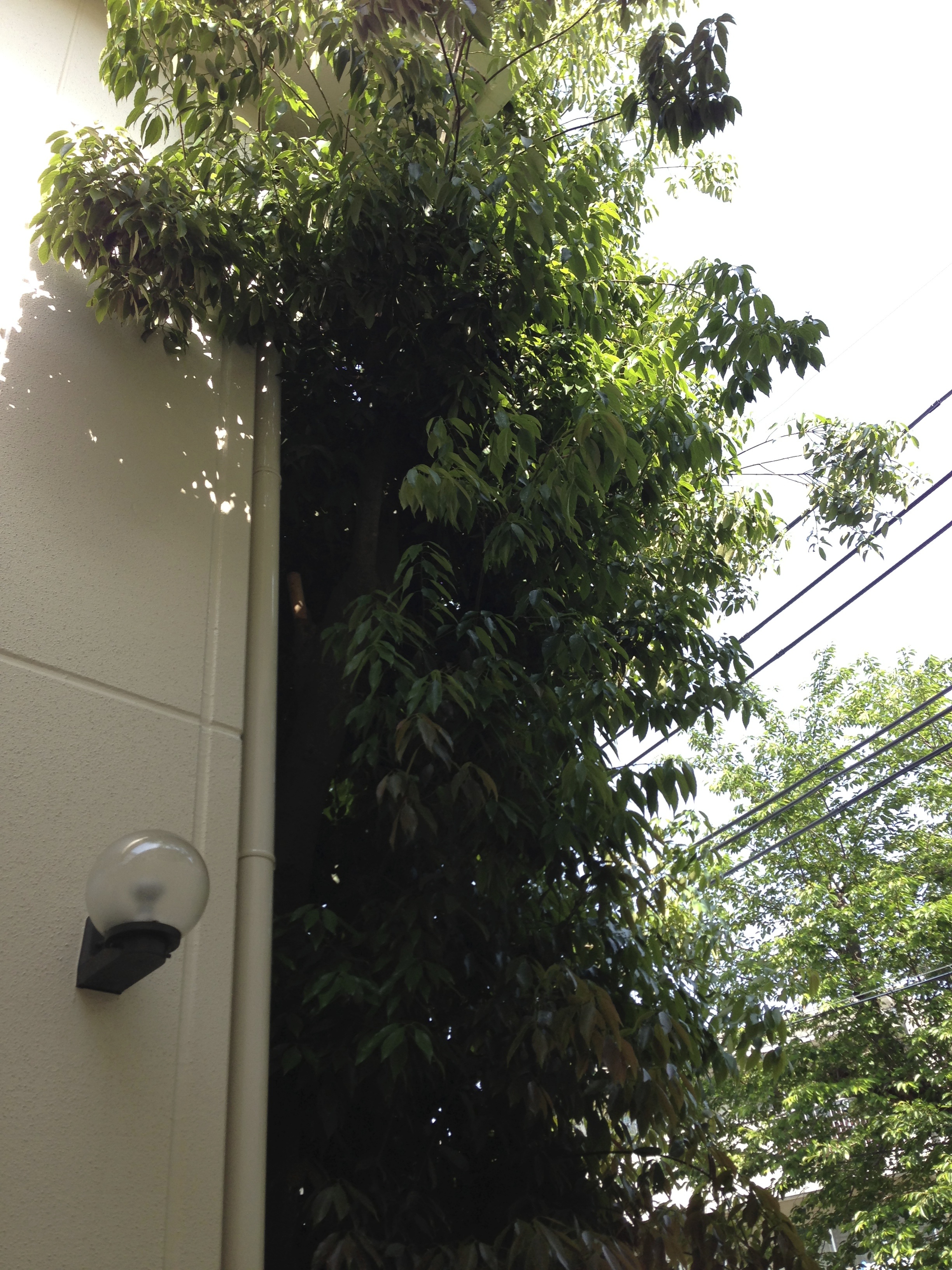 カシの木。剪定作業をしに登った。