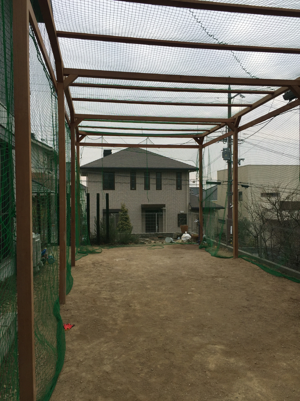バッティングゲージ、木製パーゴラ練習場ってところでしょうか。