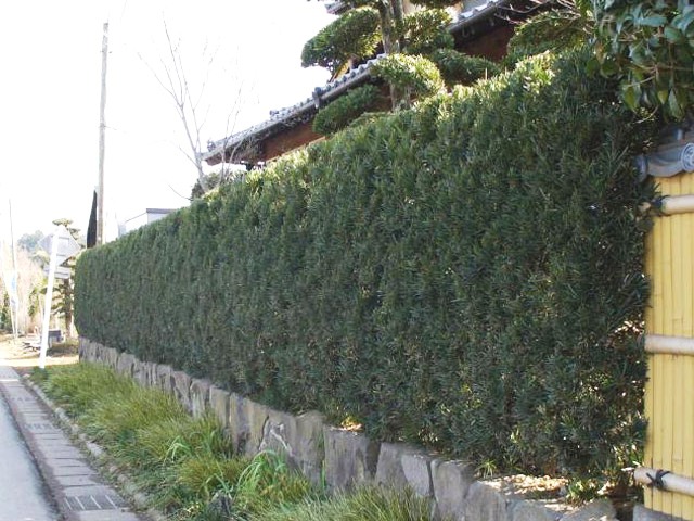 これ、写真。生垣によく使われるマキです。