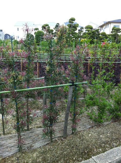 これを先ほどの新芽が紅色かかったマキで組みますと、