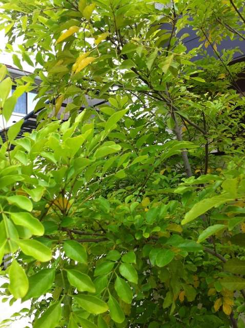 こちらはシマトネリコ。戸建のシンボルツリーとしては人気の樹木。