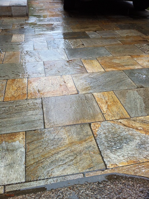 雨の日の屋外は雨水に濡れていてさびしい感じ。