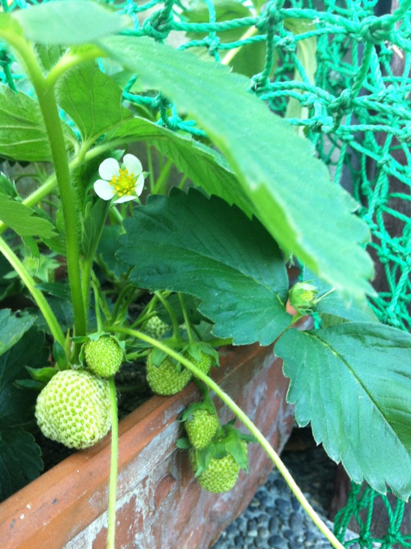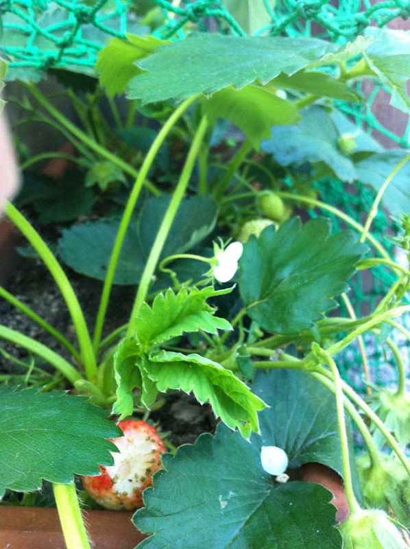 前、みつけたときは、そいつが赤くなったイチゴにかぶりついていた。
