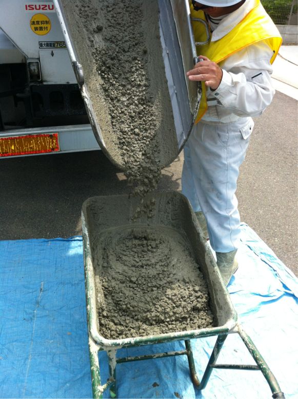 生コンをどろろと流し込みます。鉄筋も配置しましてね。