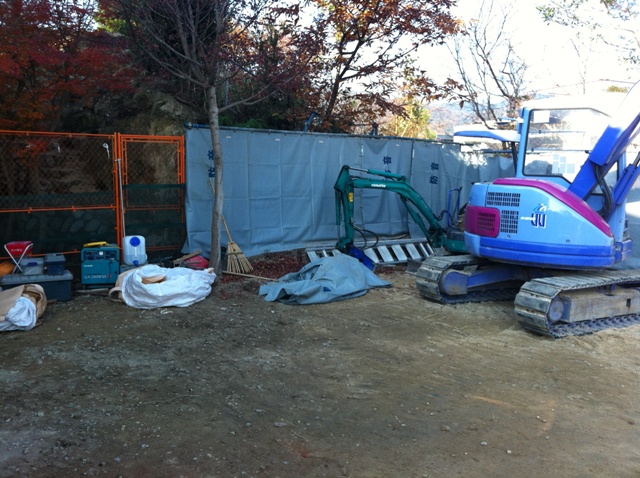 今、先行の擁壁工事が展開中で、それが終わりしだい、