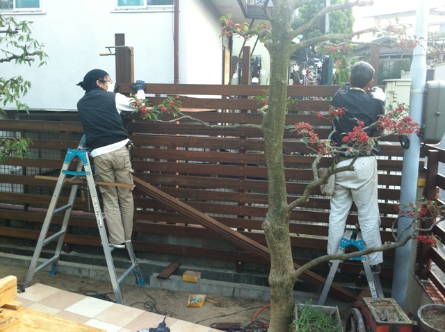 それをやりながらの、ウッドフェンス組立て!