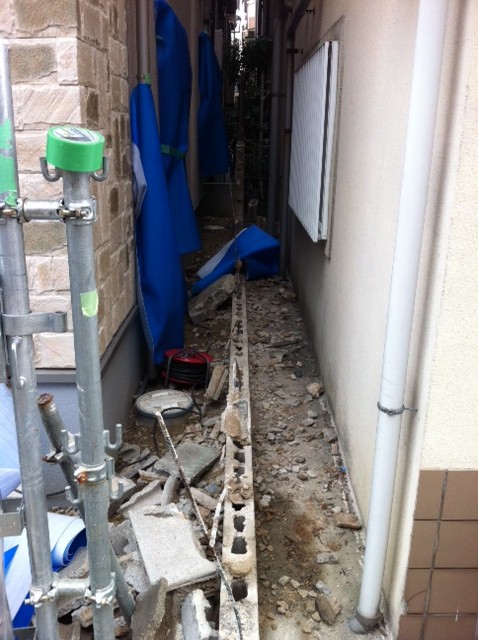 着工初日の今日は裏まわりからの工事となります。
