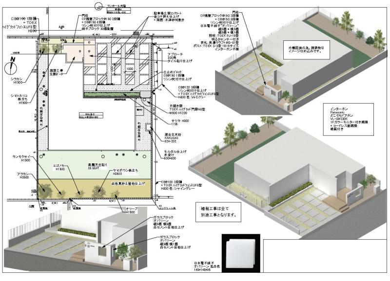 こちらでは、あと目隠しフェンスや扉の設置や植木。