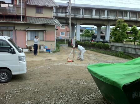レベルと言う望遠鏡みたいなメカで、高さを確認していきます。