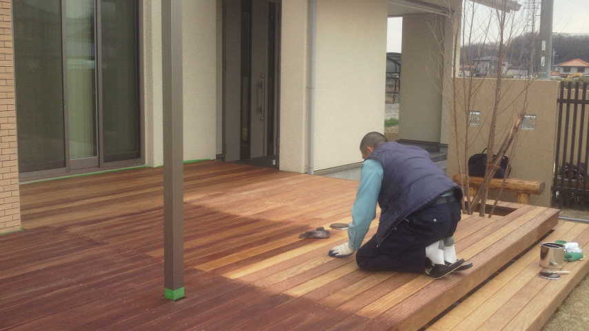 はぅ。さて、そう言う事で本日はウッドデッキ塗装作業。