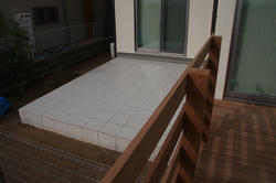 ウッドデッキに隣接しましてタイル貼りのテラス。