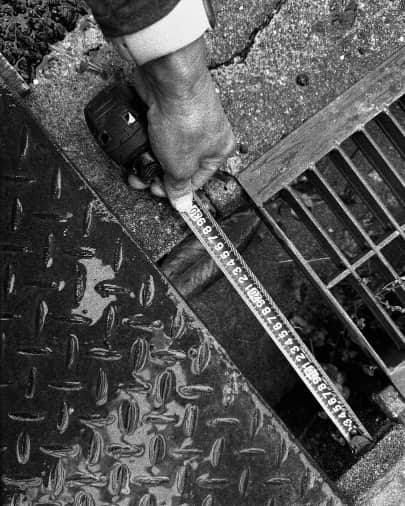 消防局が各露店の消化器を点検してまわっている。