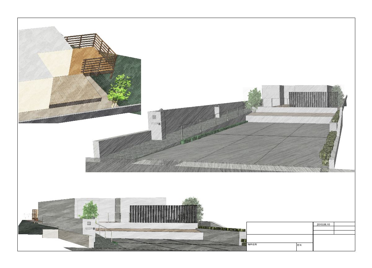 施主様と打ち合わせをさせていただき、お聞きした内容でどのように完成した姿をお伝えするか、とてもエクステリアのご説明は難しいです。