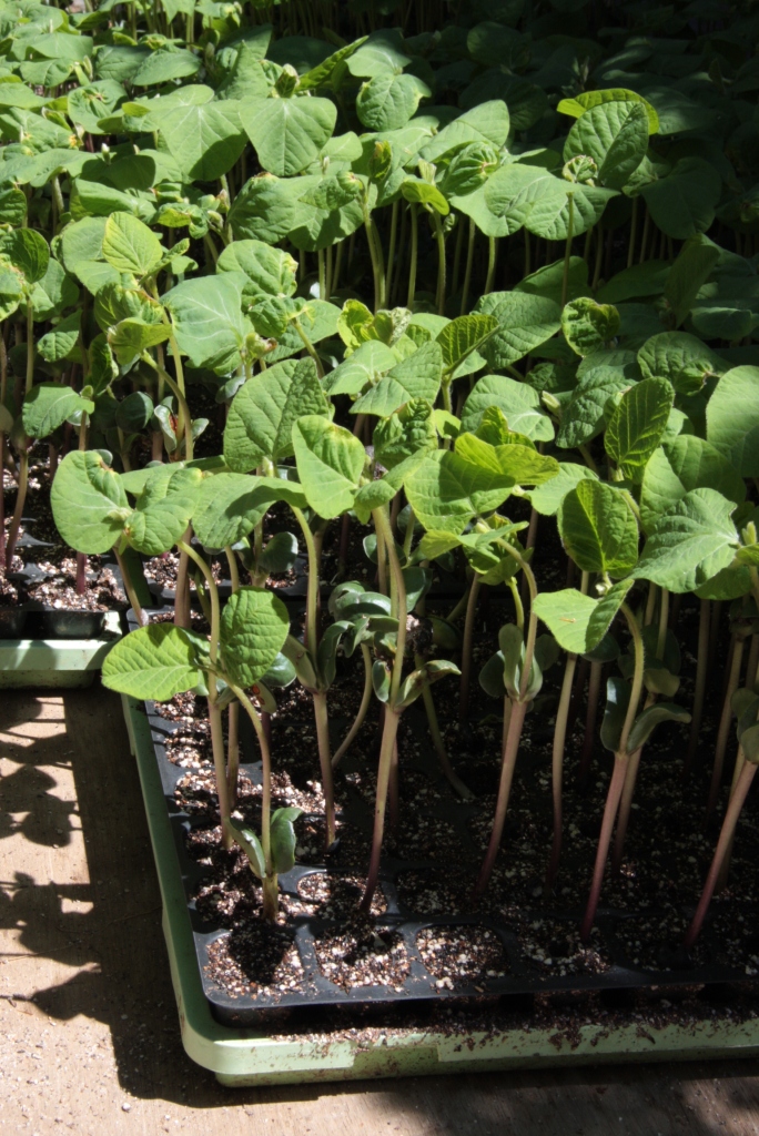 去年とれたエダマメの実を冷凍保存、そして5月下旬ごろかな、pot に植え付け。