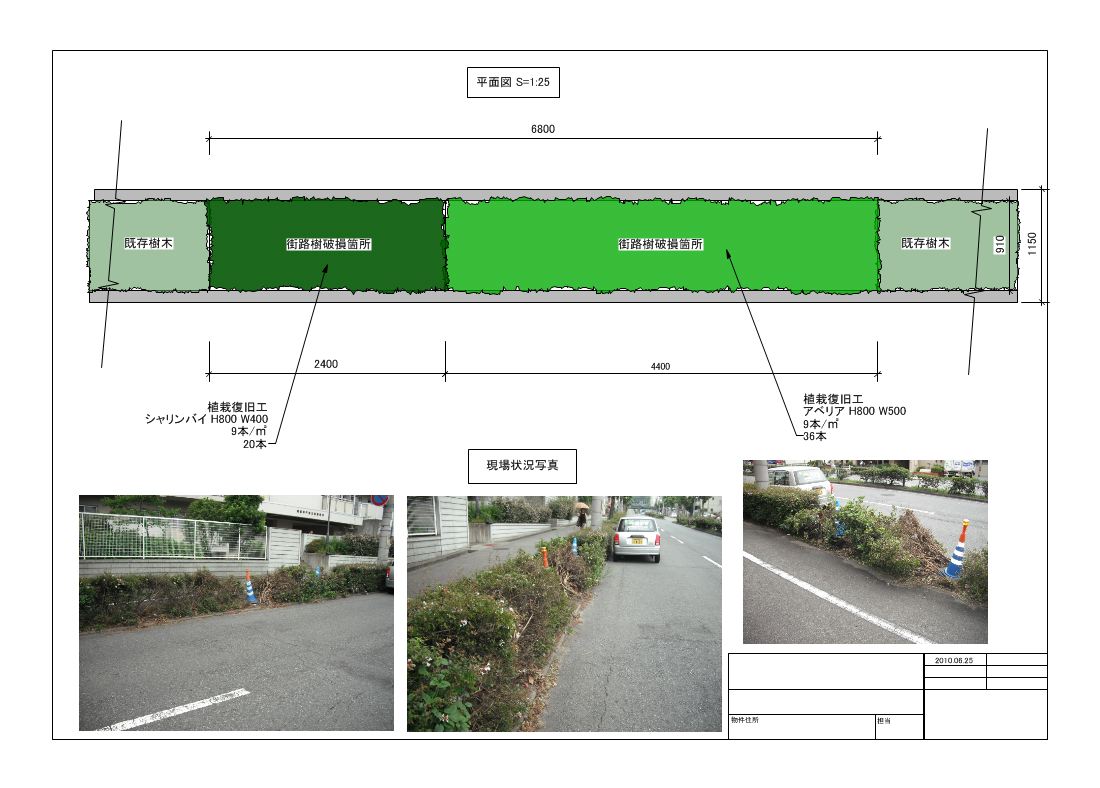 街路樹に車がつっこんで、その補修工事の図面。