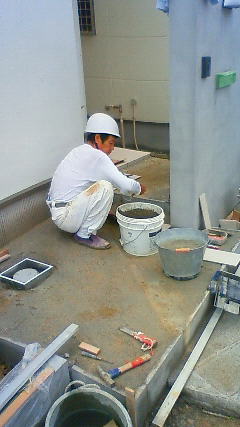 S様邸、先週の続きから、N氏が現場管理する中床タイル貼りを始めております。