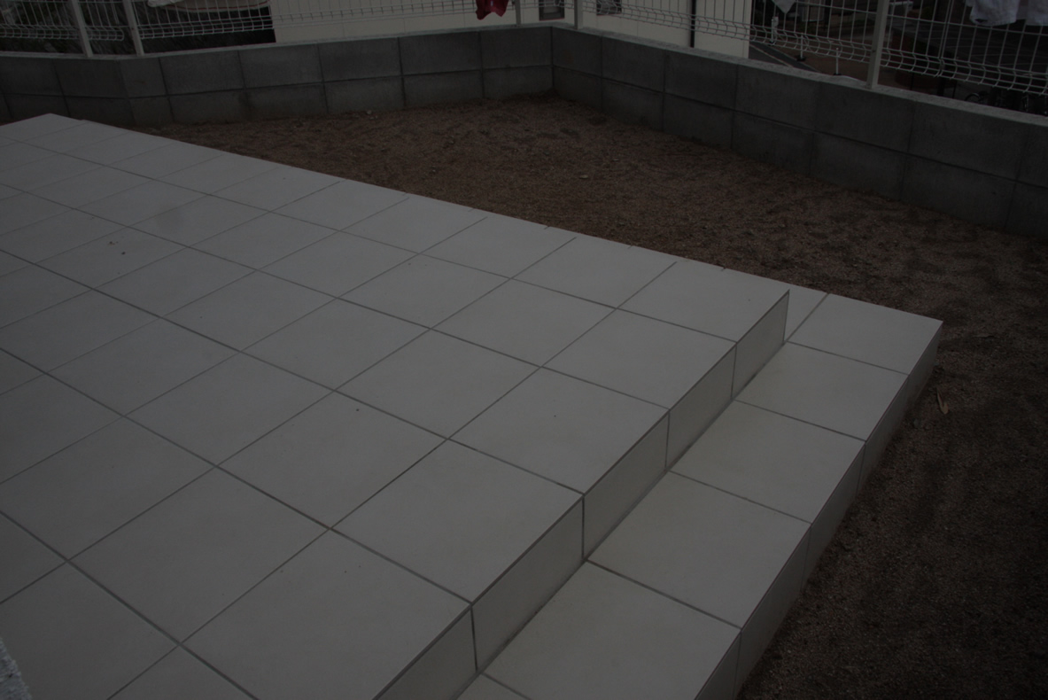 完成しているタイル貼りのテラスはこんな感じ。。。