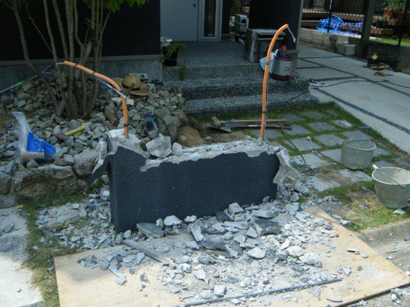 過去に、私たちの手で組み立てた門柱を解体しました。