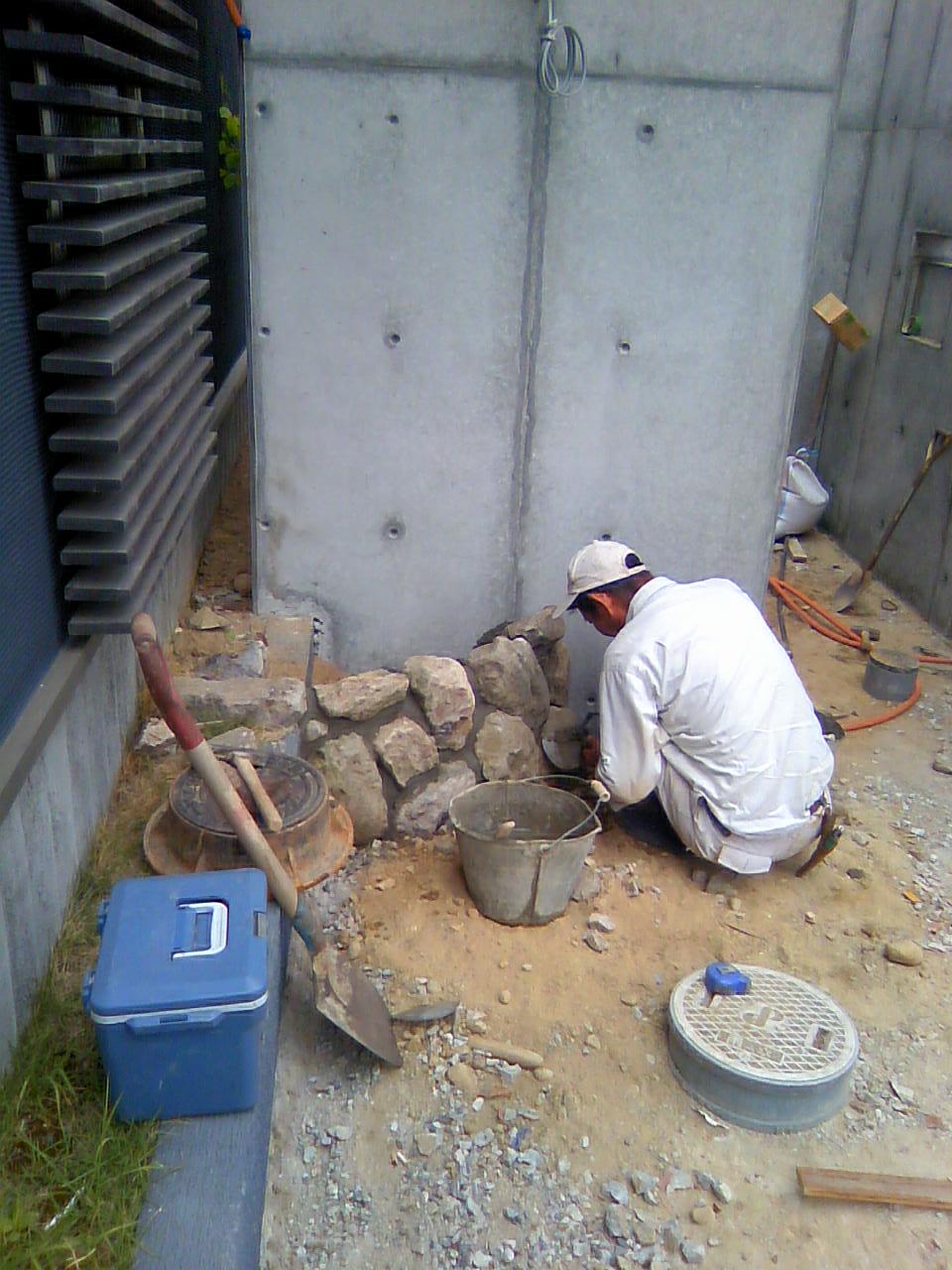 おやじさん、石積み中です。