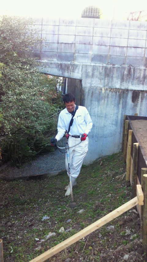 そして今、刈ってくれている箇所が芝生になるよていの箇所。