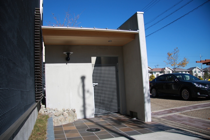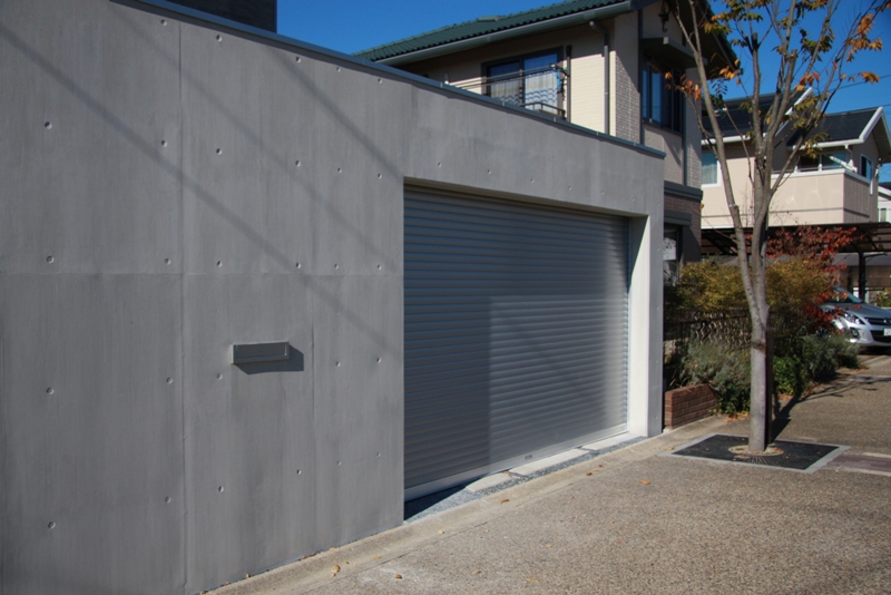 擁壁と電動シャッターの現場。静々動々と言う電動シャッターの商品が入っていますが、これとってもかっこいい。