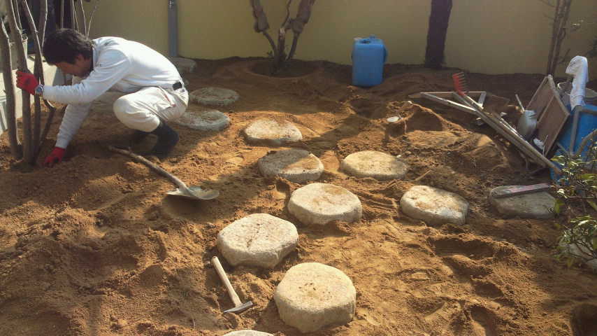 そのアプローチ(普段歩いていただくところ)の逆サイドに駐車場2台分の準備が整いつつあります。