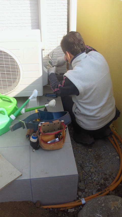 N様邸ではにしむら君とQ氏、そしてK電気さんが作業中!