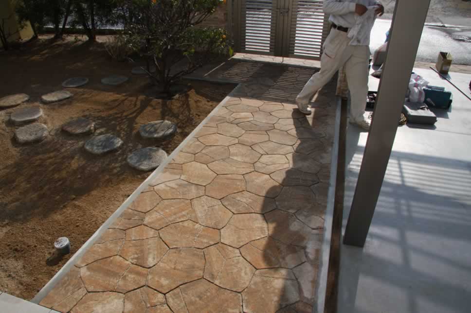 昨日、塗り込んだ洗い出し。ナチグロ石の洗い出しに薬品を散布して固まるのを遅らせていましたので、本日、その表面を水洗い中!
