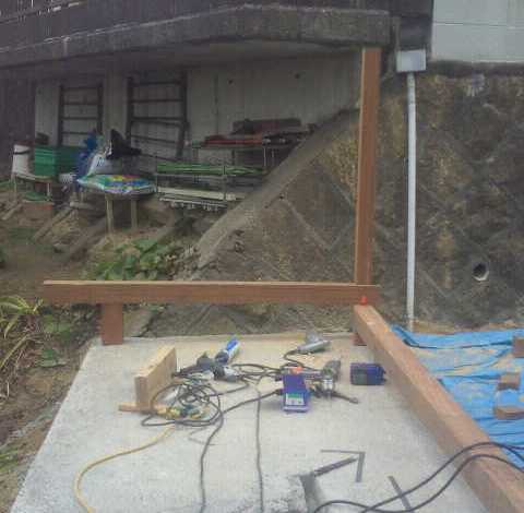 N様邸にてウッドデッキのスタート。