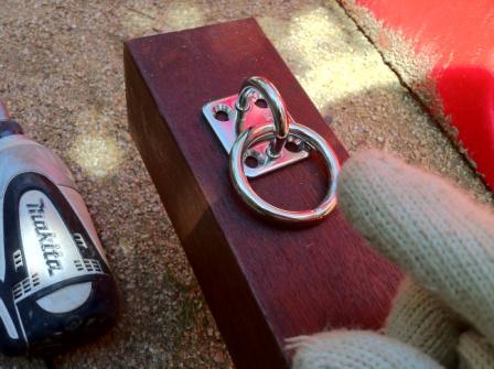 あらかじめ、こう言ったフック金具をてっぺんに取り付けておきまして