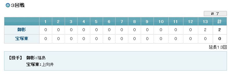 このスコア見て下さい。延長13回ですよ。結果は0-2で敗退。。。